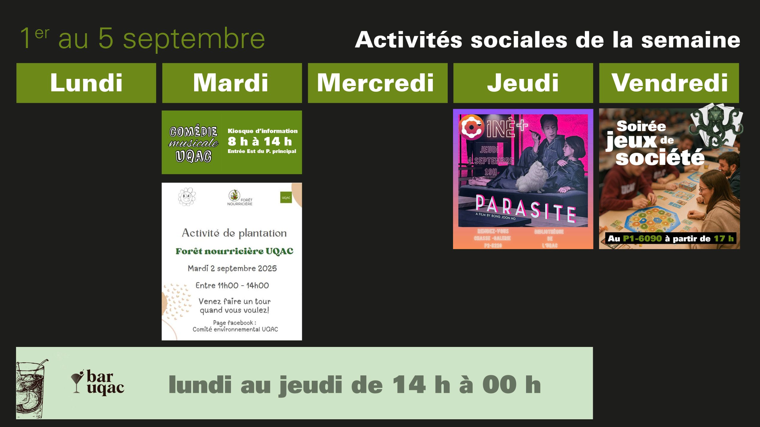 Recrutement comédie musicale / Plantation à la forêt nourricière / Cinéclub / Soirée jeux de société